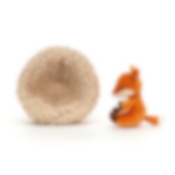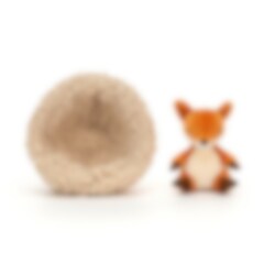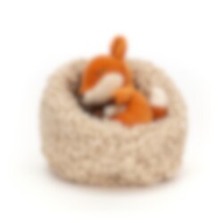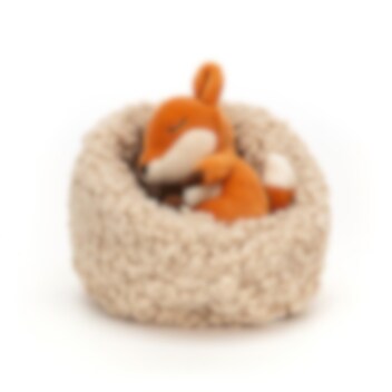 Smyg närmare och ta en titt - denna övervintrande lilla räv sover så sött! Denna lilla hoprullade rävunge har gjort sig ett gosigt beige bo eller rede där den kan ta sig en bekväm lur under kalla nätter. En sötnos med blundande ögon, gulliga små spetsade öron, en svans med elegant vit spets, sammetsmjuk päls i orange och gräddvitt tillsammans med söta bruna små tassar. Denna lilla sömntuta har krupit ner i sitt mysiga bo och drömmer nu som bäst. En bra kompis att ha vid läggdags om du har svårt att komma till ro. Tillverkad i 98% polyester, 2% spandex och handtvättas vid behov.