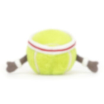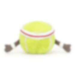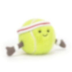 Här är en kul och sportig mjuk leksak i form av en glad tennisboll. Den är verkligen iögonfallande med sin sammetslena och uppseendeväckande gula päls, broderade sömmar samt matchande huvud- och handledsband. En härlig liten kompis eller maskot som med ett glatt leende gör två tummar upp. Den perfekta partnern för alla tennisentusiaster. Vid behov kan den tvättas i maskin på 30°C skontvätt och hängtorkas.