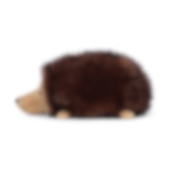 En riktigt stor och fantastisk mjuk igelkott med silkeslena taggar i chokladbrunt med svarta spetsar. Härligt gosig och kramgo med ett vänligt ansikte, nästan gömda små öron och gulliga små knoppar till tassar. En perfekt kompis att mysa med. Tillverkad av 53% akryl, 47% polyester och handtvättas vid behov.