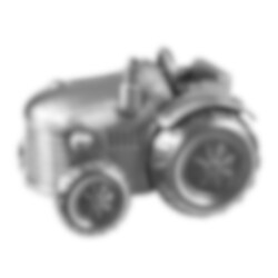 Förtennad sparbössa som föreställer en traktor. En häftig dopgåva att ge till barnet som ska döpas. Storlek 12 x 9 cm.