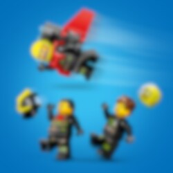 En avlägsen skogsbrand härjar utom kontroll! Dags att sätta in mäktiga LEGO® City Brandräddningsplan. Ladda planets vattentankar och lyft mot skyn för att ta itu med branden. Svep lågt över lågorna för att släppa ner stora mängder vatten. Lossa sedan de kraftfulla brandsläckarna och skicka ut den futuristiska brandmannen med jetpack för att släcka lågorna och rädda dagen. Lycka till!