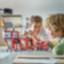 Följ med gänget på den coolaste brandstationen i LEGO® City. Planera räddningsuppdrag i det moderna kontrollcentret på översta våningen. Ta brandstången till utrustningsområdet och maskinrum 1 och 2. Montera stegen eller 360-graderssläckaren baktill på brandbilen. Starta sedan RC-drönaren från helikopterplattan, hämta din trogna brandhund och ge dig ut på ännu ett actionfyllt brandbekämpningsäventyr!