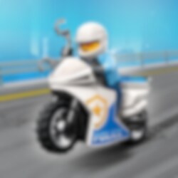 SKRIIIK! Hallå! En skurk flyr med stulna pengar! Följ efter med den supersnabba polismotorcykeln. Hjälp LEGO® City polisen att ta fast tjuven och sätt sedan på honom handbojorna och för honom till närmaste fängelse. Grym skurkfångaraction väntar i LEGO City!