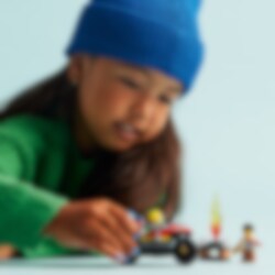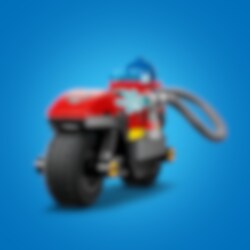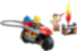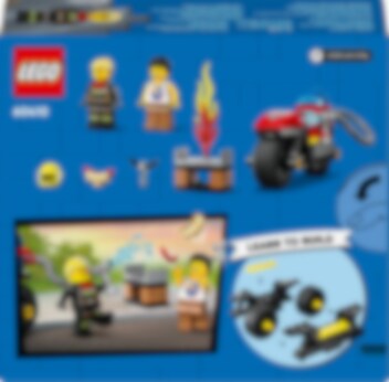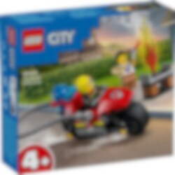 Hjälp! En trevlig grillkväll har förvandlats till en våldsam brand! Kör ut brandräddningsmotorcykeln och skynda till platsen. Denna maskin är ultrasnabb och ultracool med superbreda däck, vattentank och slang. Hjälp brandmannen att släcka lågorna för att rädda korven... och dagen! Massor av roliga äventyr väntar i LEGO® City.