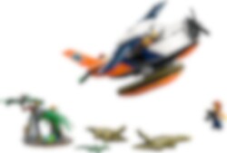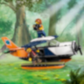 Packa karta och kamera och kliv ombord på sjöplanet för episka naturäventyr. Snurra propellern och susa fram på vattnet i hög hastighet för att lyfta mot skyn. Utför en perfekt flodlandning och upptäck en djungelgrotta, en söt groda och en krokodilfamilj. Dyk in i en värld full av djungelberättelser med LEGO® City!