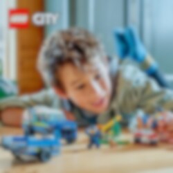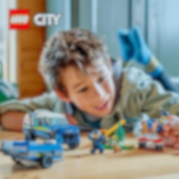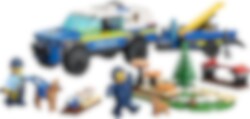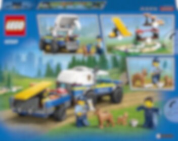Voff! Voff! Följ med LEGO® City Polisens hundenhet på hundträning och valputveckling. Lasta utrustningen i släpet. Glöm inte matskålarna! Hjälp den ivriga polishunden och valpen in i den coola hund-SUV:en och bege dig till träningsplatsen. När du kommer fram kan du sätta upp gungbrädan, hopphindret och balansstegen och göra dig redo för en rolig dag.