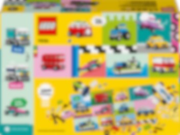 Överraska fordonsälskande barn från 5 år med bygg- och leksetet LEGO® Classic Kreativa fordon (11036). Detta färgglada bilbyggset innehåller en blandning av klossar och delar plus enkla guider till ett färgglatt set med oändligt ombyggbara fordon. Barn kan bygga en polisbil, en glassbil, en fyrhjuling, en frontlastare, en lastbil, en kombi, ett terrängfordon och en limousin med 900 byggklossar, specialdelar, 52 hjul och enkla instruktioner. Sedan kan de bygga om fordonen på nya roliga sätt med hjälp av idéer till olika designer, coola detaljer och färgglada dekorationer. I takt med att deras kreativa byggfärdigheter utvecklas kan barn testa sina egna designer. Inspiration ingår med 10 fantasifulla idéer för att kickstarta roliga och fria bygglekar. Instruktioner finns även i appen LEGO Builder, där barn kan zooma in, rotera modeller och följa sina framsteg. LEGO Classic leksaker med massor av idéer och inspiration låter föräldrar dela roligt byggande och utvecklingsmilstolpar med sina barn.