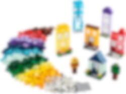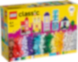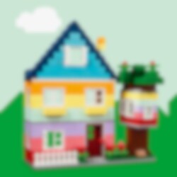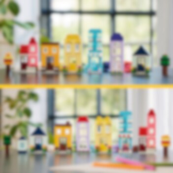 Bygg 6 färgglada hus med olika utformning, höjd och form. Det kreativa nöjet fortsätter när du lägger till klossar för att göra husen högre och byter dörrar, fönster, tak, trädgårdar och mer för att ändra husens design. Kolla in de 8 medföljande byggidéerna för ännu fler möjligheter och ännu häftigare byggnader. Eller kombinera massor av klossar för att bygga ett superstort hus!