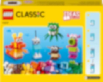 Introducera barn till en värld av lekfull inlärning med leksetet LEGO® Classic Kreativa monster, med färgglada LEGO delar i regnbågens alla färger och 5 söta minimonsterbyggen för att snabbt komma igång med det roliga. Varje byggidé har en bygguide med bilder som även nya LEGO byggare kan följa – innan de dyker ner i påsen med extra klossar och går vidare till att skapa sina alldeles egna monster.