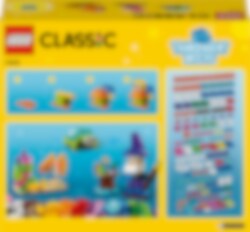 Byggsetet LEGO® Classic Kreativa transparenta klossar (11013) innehåller ett bländande urval av genomskinliga LEGO delar i alla slags färger, former och storlekar, plus ett urval av spännande klassiska LEGO klossar, delar, ögon och hjul. Allt barn behöver för oändliga timmar av kreativ lek.Ett perfekt lekset för små byggare från 4 årDetta högkvalitativa lekset innehåller 8 inspirerande byggidéer. Det finns en leksaksfågel, ett lejon, en robot, en enhörning, en rosa fågel, en trollkarl med trolldrycker och en fisk med en korallmiljö. Och eftersom varje modell har en enkel bygguide och digitala bygginstruktioner kan även nybörjare uppleva stoltheten och glädjen i att bygga sina egna LEGO leksaker.Hjälper barn att utveckla viktiga livsfärdigheterLEGO Classic byggseten inspirerar pojkar och flickor att fantisera och skapa. Barn kan bygga och leka med vänner och familj samtidigt som de utvecklar kreativa och fysiska färdigheter. Lärande har aldrig varit så roligt!