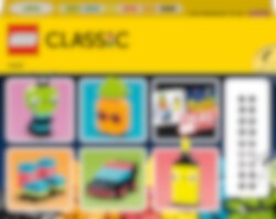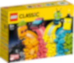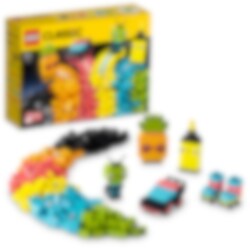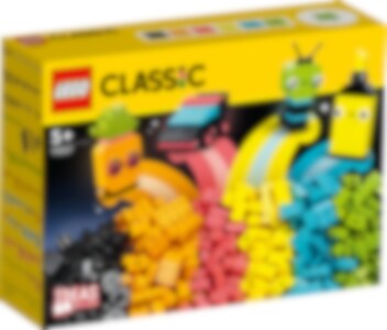 Barn som gillar klara färger kommer att älska denna inspirerande blandning av neonfärgade klossar. Det finns 5 enkla modeller att sätta ihop för att bygga upp deras självförtroende – en ananas, en överstrykningspenna, en bil, en utomjording och rullskridskor – och oändligt roliga fria bygglekar att utforska! De kan dessutom väcka sina färgglada skapelser till liv med setets 18 ögonklossar.