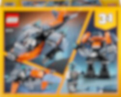 Upptäck nya spännande planeter med cyberdrönaren. Hoppa in i cockpit, starta raketmotorerna och flyg ut i rymden med robotminifiguren för djärva äventyr! När du landar kan du bygga om den till en häftig cyberrobot för att fortsätta resan, förvandla den till en cool cyberskoter för ännu mer action eller skapa något nytt från din fantasi. Njut av timmar av rymdskoj med detta fantastiska 3-i-1-set!