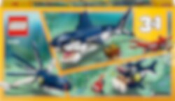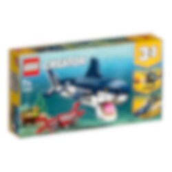 Dyk ner i ett hav av äventyr med LEGO® Creator 3-i-1-setet Djuphavsvarelser. Hjälp den söta havskrabban att skydda skattkistan från den stora läskiga hajen med huggande käftar, spetsiga tänder, reflekterande ögon och kraftfull viftande stjärtfena! Bygg sedan om för ännu mer undervattensskoj med en rörlig bläckfisk eller en marulk med enorm mun.