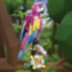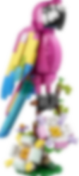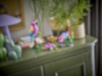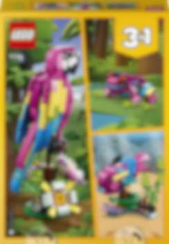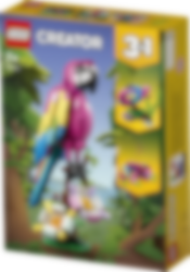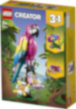 Små byggare och passionerade djurfantaster från 7 år kan färdas djupt in i regnskogen för actionfyllda berättelser med byggsetet LEGO® Creator 3in1 Exotisk rosa papegoja (31144). Setet innehåller en klarrosa och blå papegoja som kan rotera kroppen helt när den sitter på en trädgren och röra på vingarna och stjärten. 3-i-1-leksaker kickstartar kreativa lekar Barn kan bygga 3 olika exotiska djurleksaker med detta fantastiska LEGO 3-i-1-set. De kan bygga en färgglad papegoja som sitter på en trädgren, bygga om den till en lekfull fisk som simmar vid havsbotten eller skapa en busig groda som kan röra på benen. En rolig digital upplevelse för LEGO fans Ladda ner appen LEGO Builder och kliv in i en ny värld av byggande, där barn kan zooma och rotera modeller i 3D, spara set och hålla reda på sina framsteg.
