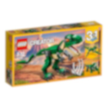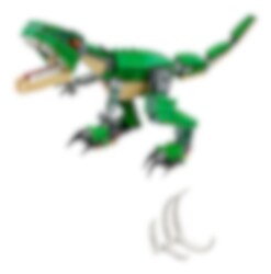 Ha kul med den fantastiska T. rex, med färgskala i mörkgrönt och beige, orangefärgade ögon, rörliga leder och huvud, stora klor och en öppningsbar mun med spetsiga tänder. Innehåller även dinosauriens bytesdjur i form av en byggbar bröstkorg. Bygg om denna LEGO® Creator 3-i-1-modell av mäktiga dinosaurier till en Triceratops eller en Pterodactyl.