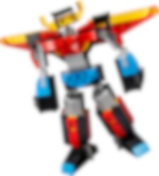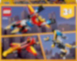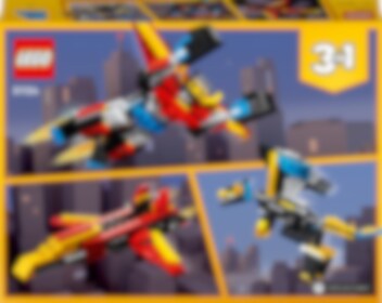 Res in i framtiden på fantastiska äventyr med denna spektakulära superrobot! Den kan skydda städer med sin otroliga styrka eller sväva upp i luften med sina vingar. Bygg sedan om roboten till en rörlig drake eller ett snabbt jetplan med justerbara vingar för ännu mer futuristisk action – eller använd samma klossar för att skapa något helt nytt! Valet är ditt med detta fantastiska 3-i-1-set.