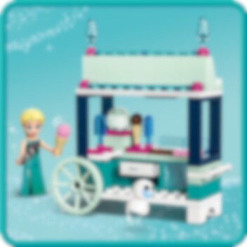 Hjälp Elsa att servera glasstrutar och isglass i detta underbara LEGO® ǀ Disney byggset. Setet är inspirerat av Disneys succéfilm Frost, och du kan följa med Elsa när hon delar frostiga godsaker med sina vänner. Vilken vacker snöglob! Dela din kärlek till Elsa och snowgien med 2 ringar att samla, var och en med en dekoration som kan bytas ut när du vill. Vänta, var kom den där snowgien ifrån?
