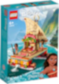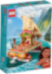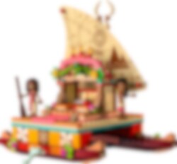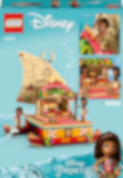 Hissa segel mot nya äventyr! Följ med Vaiana och hennes mamma Sina i detta roliga LEGO® ǀ Disney set. Bygg båten som Vaiana hittade i grottan, hissa det dekorerade seglet som visar sägner om Motunuifolket och ge dig ut på äventyr för att se vad som finns där ute. Lär dig hur man använder en åra med Sina medan Vaiana spelar trummor för inspiration. Ät en bit kokosnöt innan du tar en tupplur i vindskyddet. Åh titta, en delfin! Nu leker vi!