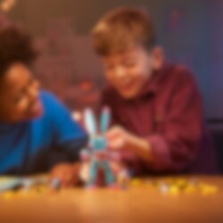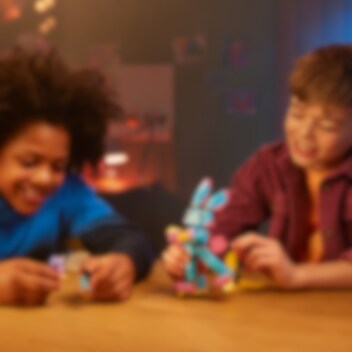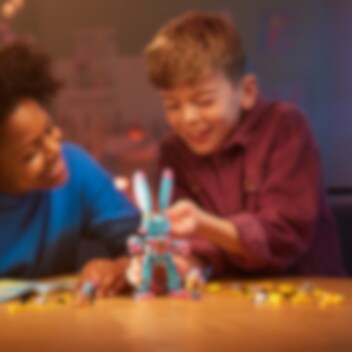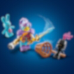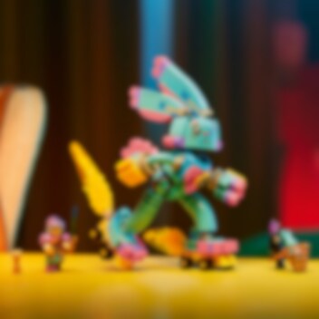 Låt barn från 7 år hoppa in i all action i Drömriket med bygg- och leksetet LEGO® DREAMZzz Izzie och kaninen Bunchu (71453). Setet är baserat på en spännande berättelse från tv-serien och låter barn hjälpa huvudkaraktären Izzie att skapa en större version av hennes bästa mjukisdjur så att hon kan rädda leksakskaninen som blivit kidnappad av en mardrömsgrimspawn. 1 set, 2 sätt att bygga Den stora, levande versionen av Bunchu har helt ledade armar, ben och hals. Barn kan använda sin fantasi när de bygger kaninen och följa berättelseledda bygginstruktioner, där de kan välja att ge den rullskridskor och handskar eller bivingar och gadd. Fantastisk minifigur En detaljerad minifigur av Izzie hjälper till att väcka all action till liv. Izzie har tillbehör som en rustning, ett svärd och ett timglas. Setet innehåller även figurer av en Grimspawn och en mindre Bunchu så att barn kan återskapa hela berättelsen.