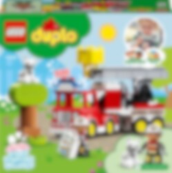 LEGO® DUPLO® Rescue Brandbil (10969) kommer att fängsla barn från 2 år som gillar brandbilar. Djurräddningsuppdrag med brandbil En katt sitter fast längst upp i ett högt träd! Brandbilen rusar till platsen med blinkande ljus och sirenen på (batterier ingår). Din lilla hjälte kan knuffa och vrida bilens spak för att höja stegen och rotera korgen. Om katten inte törs röra på sig finns det lite godsaker att locka ner den med. Och om inte det heller fungerar är det dags att dra ut vattenslangen! Detta handgripliga lekset utvecklar förskolebarns sociala och känslomässiga färdigheter och deras finmotorik när de iscensätter verkliga äventyr för en vardagshjälte, med ett gulligt djur att rädda och en snäll brandman i en brandbil full av funktioner. Lekfullt lärande för små barn Föräldrar kan dela värdefulla milstolpar i sina barns utveckling när LEGO DUPLO leksaker sätter obegränsad lek, självuttryck och roligt utforskande i små barns händer.