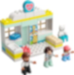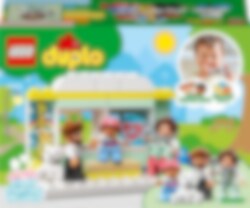 Små läkare och sköterskor kommer att älska de roliga aktiviteterna och den snälla doktorn i LEGO® DUPLO® Rescue Läkarbesök (10968). Detta mångsidiga lekset är dessutom ett perfekt sätt för att förbereda barn från 2 år inför ett läkarbesök. Utvecklande lekset med läkare Introducera förskolebarn till roliga aktiviteter på läkarkliniken. Den snälla doktorn använder ett flexibelt stetoskop (kan inte tas loss) för att lyssna på barnets hjärta – barnet har dessutom en tröja med ett hjärta på. På väggen sitter en längdmätare med en giraff på, och det finns ett handfat att tvätta händerna i och stolar där pappa kan sitta. Detta lekset handlar om vikten av god hälsa och omtänksamhet, och på så sätt är det perfekt för att utveckla barns sociala och känslomässiga färdigheter. Lekfullt lärande för små barn Föräldrar kan dela värdefulla milstolpar i sina barns utveckling när LEGO DUPLO leksaker sätter obegränsad lek, självuttryck och roligt utforskande i små barns händer.
