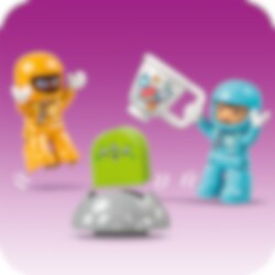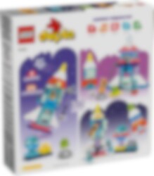 3 ... 2 ... 1 ... lyft mot aktivitetsfyllda lekstunder med den ombyggbara 3-i-1-leksaken Äventyr med rymdfärja (10422). Fantasin når nya höjder när små barn från 3 år leker astronauter som utforskar galaxen i ett leksaksrymdskepp, möter utomjordingar och lär sig om solsystemet. Denna rymdleksak är fullpackad med roliga tillbehör som sätter fart på kreativ lek. Förskolebarn utforskar nya horisonter när de hittar på roliga äventyr i yttre rymden med de 2 LEGO® DUPLO® astronautfigurerna. De kan lära känna en utomjording eller gå på en rymdpromenad för att laga raketen med leksaksskiftnyckel. Lekstunderna känns alltid nya med detta flexibla 3-i-1-byggset, med massor av intressanta klossar och delar som kan byggas om till ytterligare 2 rymdfarkoster, en planetbas eller vad som helst som små barn kan hitta på! Denna roliga, pedagogiska leksak som hjälper förskolebarn att utveckla sin finmotorik har även vridbara kugghjul, en snurrande propeller, upprullningsbar vinsch, gångjärnsförsedda dörrar och en ljuskloss.