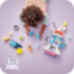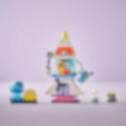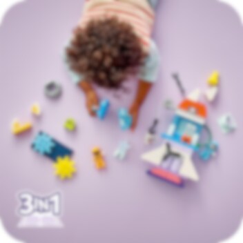 Susa iväg på ett rymduppdrag med ditt lilla barn. Detta 3-i-1-raketset fyller lekstunden med intergalaktiskt skoj när förskolebarn djärvt går på jakt efter snälla utomjordingar. Små barn från 3 år utvecklas när de finslipar sin finmotorik och sittsjälvuttryck genom kreativa rollekar. Detta mångsidiga leksaksrymdskepp kan byggas om till ytterligare 2 fordon, så det går alltid att starta ett helt nytt äventyr!