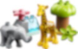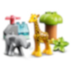 Stig in i en värld av fantasifull lek med LEGO® DUPLO® Afrikas vilda djur (10971) och dela värdefulla utvecklingsmilstolpar med små djurälskare från 2 år. Småbarnsvänliga djur och miljöer Introducera förskolebarn till Afrikas djur med en förtjusande elefantunge och giraffunge. Djurfigurerna, som är lätta att hålla i, har blommor och ett träd att knapra på och en 3-dimensionell, vikbar lekmatta med skogsmark att utforska. Denna mångsidiga safarileksak utvecklar barns självuttryck och finmotorik samtidigt som de njuter av oändliga rollekar med Afrikas sötaste djur. Lekfullt lärande för små barn Alla LEGO DUPLO set är smart utformade med roliga berättelser, klara färger, mångsidiga karaktärer och en mängd detaljer för att ge din lilla byggare en STOR start i livet.