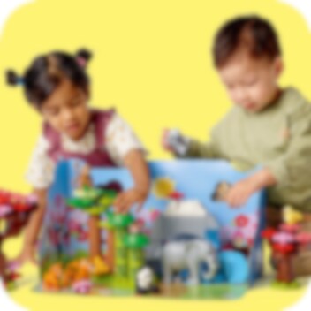 Leksetet LEGO® DUPLO® Asiens vilda djur (10974) är fullspäckat med roliga detaljer och fantastiska djur som barn från 2 år kan leka vilda djurlekar med! Massor att utforska tillsammans för förskolebarn och föräldrar Varje djurälskande barn kommer att fängslas av de oändliga lekmöjligheterna i denna myllrande asiatiska naturmiljö. Här bor stora elefanter och elefantungar, pandor och tigrar, en apa, 2 fåglar och 2 röda pandor, och det finns bambu, ett körsbärsträd och en vikbar, 3-dimensionell lekmatta. Det finns till och med en ljudkloss som spelar upp realistiska ljud och djurläten. Lekfullt lärande för små barn Alla LEGO DUPLO set är smart utformade med roliga berättelser, klara färger, mångsidiga karaktärer och en mängd detaljer för att ge din lilla byggare en STOR start i livet.