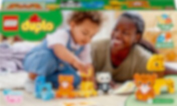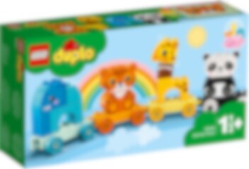 Alla barn älskar djur, eller hur? Ge ett litet barn den perfekta introduktionen till djurriket med LEGO® DUPLO® My First Djurtåg (10955).En djurparad som kan drasDet finns massor för små djurälskare att göra med elefanten, tigern, giraffen och pandan. När de bygger och bygger om, radar upp vagnarna, sätter fast djuren och tar loss dem från tåget för att stapla dem ovanpå varandra utvecklar de finmotoriska färdigheter och utforskar en magisk värld av fantasifull rollek. Innovativa funktioner, som giraffens böjbara hals, gör denna lekfulla pedagogiska leksak ännu roligare. Med byggkort med bilder av modellerna i naturlig storlek kan barn lägga klossarna över bilderna när de bygger. För ännu mer skoj kan barn koppla ihop tåget med andra DUPLO leksaker med hjul.Pedagogiska leksaker för barnLEGO DUPLO leksaker sätter fri lek, eget uttryck och lekfullt lärande i förskolebarns händer. Med DUPLO lekset kan föräldrar och barn dela värdefulla utvecklingsmilstolpar när de leker tillsammans.