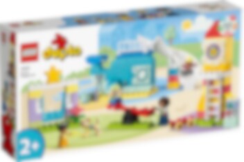Ta med utomhuslekarna in med det roliga och mångsidiga setet LEGO® DUPLO® Town Drömlekplats (10991). Små barn från 2 år bygger en fantastisk lekplats och har sedan roligt när de lär sig nya saker, leker och får nya vänner. Småbarnsleksak för roliga lekstunder Denna pedagogiska leksak med en lekplats är en kreativ födelsedagspresent med massor av modern utrustning. Små barn kan lära sig om bokstäver och siffror medan de klättrar på valen. Det finns en mångfald karaktärer som barn kan lära känna, som en skateboardåkare och en söt ledarhund! När de leker och har roligt med figurerna lär sig små barn även sociala färdigheter som de kan använda i verkliga livet. Lärande genom lek LEGO Town byggset hjälper förskolebarn att utforska världen de ser runt omkring sig och hitta på lekar om vardagslivet. Precis som alla LEGO DUPLO leksaker har även detta set massor av pedagogiska möjligheter. De färgglada klossarna är lätta att hålla, och roliga, rörliga delar stimulerar barns sinnen och hjälper dem att utveckla sin finmotorik.