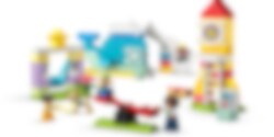 Ta med utomhuslekarna in med detta roliga och mångsidiga byggset med en lekpark! Detta färgglada lekset låter små barn bygga den ultimata moderna lekplatsen, där de kan leka, lära och få nya vänner. Det finns massor av fantasifull utrustning att utforska, från en klätterställning i form av en val till ett raketformat torn – och dessutom en traditionell gungbräda och gunga.