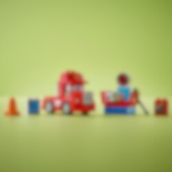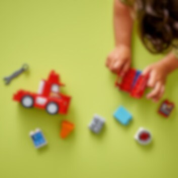 Turboladda lekstunden för fordonsfans i förskoleåldern från 2 år med bygg- och leksetet Mack på tävlingen (10417), med en stor, röd byggbar leksakslastbil från Disneys och Pixars filmserie Bilar. Små barn hjälper transportbilen Mack att se till att alla delar är på plats när Blixten McQueen kör in för ett depåstopp. De kan serva hans nya motor med skiftnyckeln. Därefter kan de hjälpa Mack att kontrollera Blixtens statistik på datorn för att försäkra sig om att racerbilen är i perfekt skick för att vinna tävlingen. Byggleksakerna från LEGO® DUPLO® │ Disney and Pixar's Cars, med välbekanta karaktärer, coola miljöer och roliga funktioner, inspirerar familjer att engagera sig, interagera och skapa roliga berättelser om Mack från filmerna ochdela värdefulla utvecklingsmilstolpar med sina små racingmekaniker.
