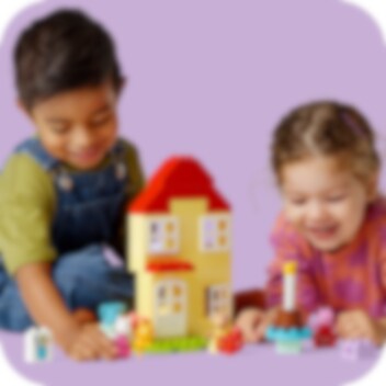 Överraska fans av Greta Gris med en kalasinbjudan! Leksetet Greta Gris – Födelsedagshus (10433) låter flickor, pojkar och förskolebarn från 2 år delta i firandet med Greta och hennes vänner. Denna leksak med Greta Gris har massor av funktioner somsmå barn kommer att känna igen från tv-serien. Den innehåller figurer av Greta, Pelle Ponny och Lena Lamm och av Gretas nalle. Inne i det ikoniska huset finns ett sovrum som nås med en stege och ett kök där små barn kan leka att de bakar en födelsedags tårta. Det finns även ett badrum med ett handfat där vuxna kan förklara vikten av att tvätta händerna, särskilt innan man äter tårta! LEGO® DUPLO® Greta Gris ombyggbara leksaker är utformade för att främja en rad olika färdigheter hos förskolebarn. Små barn utvecklar logiskt tänkande när de imiterar verkligheten och iscensätter olika kalasrutiner, som att välkomna vänner, utbyta presenter och skära upp tårtan. De utvecklar även självuttryck när de föreställer sig hur det är att vara med på ett sådant härligt firande.