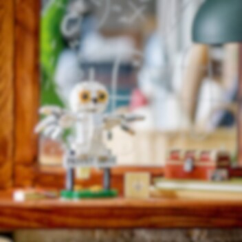 Bygg, visa upp och lek med din egen förtrollande modell av fjällugglan Hedwig! Återskapa Harrys husdjurs utseende i LEGO® stil och placera hennes huvud, vingar och stjärt i söta ställningar. Sätt Hedwig på gatuskylten för Privet Drive, där Harry Potter bodde hos familjen Dursley. Och vad finns i Harrys koffert? Ett porträtt av Harry och hans föräldrar, boken Magins historia och en trollstav!
