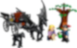 Träd in i den förbjudna skogen med Harry Potter och Luna Lovegood och möt en vuxen testral med unge som letar efter mat bland träden! Bli vän med de mystiska bevingade varelserna genom att ge dem ett äpple och en köttbit. Fäst sedan vagnen på den vuxna testralen och ta en tur från Hogwarts™ till Hogsmeade och tillbaka igen!