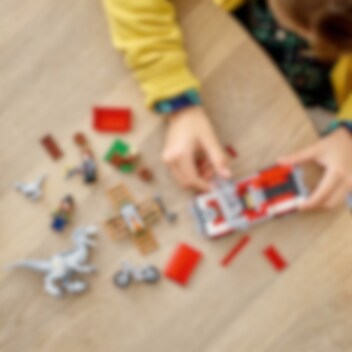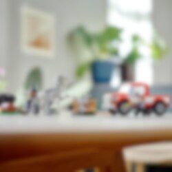Kolla in detta fantastiska lekset, som inspirerats av filmen Jurassic World Dominion. Setet innehåller minifigurer av Maisie och Rainn Delacourt, dinosaurierna Blue och Beta, pickup, cykel och en dinosauriebur med en fälla, plus en kycklingklubba som dinosauriebete. Så sätt igång och bygg, och iscensätt sedan fantastiskt actionfyllda äventyrsberättelser.