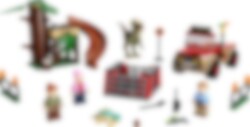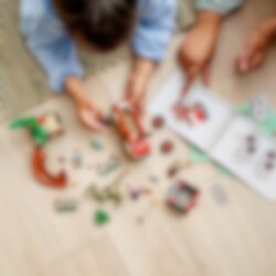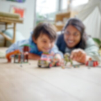 Umgås vid Camp Cretaceous med Ben, Brooklynn och Claire Dearing. Kör terrängfordonet till den coola trädkojan som har säng, handfat, toalett, stege och till och med en rutschkana till Ankylosaurusungen Bumpy! Men se upp - en Stygimoloch har rymt och ställer till med kaos på Isla Nublar. Använd moroten för att säkert locka dinosaurien in i buren. Städa sedan upp allt dinosauriebajs med spaden!
