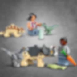 Unga fans från 4 år kan ta hand om och leka med dinosaurieungar medan de lär sig bygga med setet LEGO® Jurassic World Räddningscenter för dinosaurieungar (76963). Setet innehåller ett terrängfordon och ett forskningsområde med en grottvägg, båda med startklossar, plus en matplats, 2 minifigurer och dinosauriefigurer i form av en ankylosarus-, en triceratops- och en velociraptorunge, en mindre velociraptor och en vuxen pteranodon så att leken snabbt kommer igång. Denna LEGO dinosaurieleksak innehåller bildinstruktioner för barn som precis börjar lära sig läsa. För ännu mer digitalt skoj har appen LEGO Builder intuitiva verktyg för att zooma och rotera som låter flickor och pojkar se sin modell medan de bygger. LEGO Jurassic World 4+ set introducerar små barn till sina favoritkaraktärer från film och tv och är roliga LEGO presentset med dinosaurier. De innehåller speciellt utformade startklossar så att även nybörjare kan skapa fordon, byggnader och annat med bara lite hjälp från ett äldre syskon eller en vuxen.