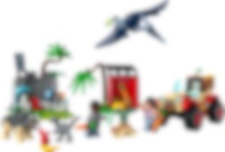 Hjälp Darius och Sammy att mata och ta hand om dinosaurierna i räddningscentret. Kör terrängfordonet till centret och lasta ur lådan. Ställ maten vid skjulet så att de små dinosaurierna kan hitta den. Åh nej – en stor pteranodon stal just fisken! Se på medan de små äter och leker en stund. Titta ... ett nytt ägg! Snart kommer det en ny dinosaurieunge.