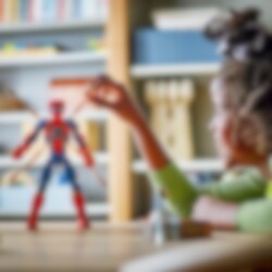 Figuren av Iron Spider-Man i detta set med 303 delar är 27 cm hög: tillräckligt stor för episk action och tillräckligt liten för barn att ta med vart de än går.