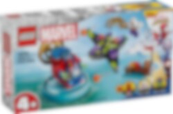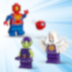 Green Goblin har tagit Spideys robotvän Trace-E! Han flyr i sitt segelflygplan, men Ghost-Spider jagar skurken för att försöka fånga honom med ett stort, gyllene nät. Spidey hoppar in i sin svävarspinner och susar över vattenytan i jakten. Kommer hjältarna att fånga Green Goblin och rädda Trace-E – eller kommer de att bombarderas av pumpaprojektiler? Actionmed Spidey mot Green Goblin för barn från 4 år.