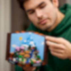 Fira 15-årsjubileet för Minecraft® med detta LEGO® set, som är särskilt utformat för vuxna spelare av det populära dataspelet. Denna öppna kubmodell av den ikoniska arbetsbänken innehåller 8 mikrofigurer och 5 minimodulbyggen med 12 Minecraft® landskap. Minibyggena och figurerna kan tas loss från huvudmodellen för en rad olika specialdesignade uppvisningsalternativ.