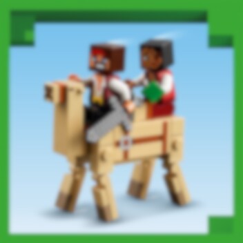 Kliv ombord på skeppet med 2 LEGO® Minecraft® pirater och hissa seglen för ett äventyr i ökenlandskapet. Vad är det som lurar i vattnet? Det är en bläckfisk! Skynda dig till torra land, där du kan ta hjälp av kartan, sadla kamelen och rida vidare mot ditt nästa episka Minecraft äventyr.