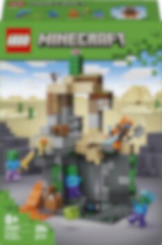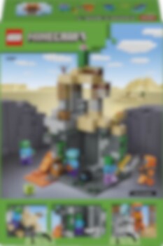 Ta dig an en hord Minecraft-zombier i grottan! Zombiehåla (21587) är ett Minecraft-set fullt av grottaction i ökenlandskapet. Ödemarksvandraren, utrustad med diamantyxa, klubba och netheritrustning, möter en slemkub och tre zombier. Prova den roterande kammaren som väcker zombier till liv och utlös stenraset med den glidande mekanismen. 284 bitar. Rekommenderad ålder: 8+.