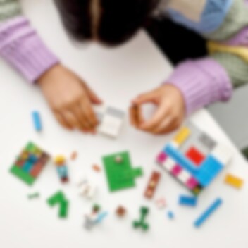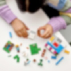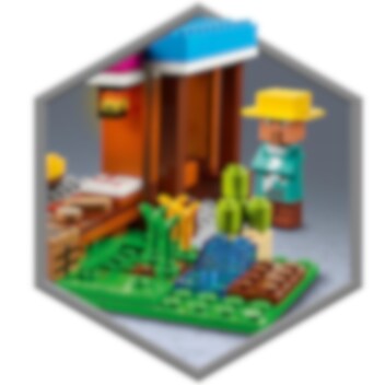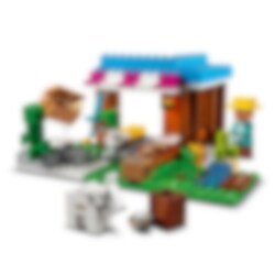 LEGO® Minecraft Bageriet (21184) innehåller massor av Minecraft karaktärer, roliga tillbehör och coola funktioner och är en underhållande gåva för barn från 8 år. Ändringsbart skoj för kreativa barn Detta aktivitetsfyllda Minecraft lekset har massor av lekmöjligheter. Samlingen av Minecraft karaktärer innefattar en bagare, en snöbybo, en get och en Creeper. Det livliga bageriet har ett möblerat rum där barn kan iscensätta vardagsberättelser. Innan brödet och kakorna kan bakas måste ingredienserna samlas ihop. Barn får vete genom att hjälpa en bonde att odla det. De får mjölk genom att mjölka geten. Slutligen följer de med bagaren för att vara kreativa i köket. För extra spänning lurar en farlig Creeper i närheten och har bestämt sig för att förstöra kistan med ett värdefullt ägg inuti. Barn måste försvara bageriet med ett klassiskt Minecraft vapen, ett diamantsvärd. När striden är över kan det modulära setet enkelt byggas om för att inspirera oändliga nya äventyr.