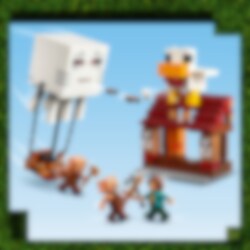 Byanfall med gastballong (21273) är ett dataspelsbyggset baserat på en scen från Minecraft® filmen. Denna högkvalitativa LEGO® Minecraft leksak för barn har en explosionsfunktion vid ballongattacken, vilket gör detta LEGO dataspelsset till en fantastisk presentidé för pojkar och flickor från 10 år. Setet innehåller populära karaktärer från dataspelet: Steve, Natalie, Dawn, 2 piglins, en gastballong, en bybo, en kyckling och en rörlig järngolem. Ballongen har plats för setets piglins och har en skivkanon. Mitt i byn finns marknadsstånd, Steves restaurang med friterad kyckling, hans tillverkningshydda och en fontän som barn kan ”spränga” med hjälp av en inbyggd funktion. På restaurangens tak finns en stor kycklingmodell med en rolig äggläggningsfunktion. För mer digitalt skoj kan barn zooma in, rotera modeller i 3D och följa sina framsteg med appen LEGO Builder.