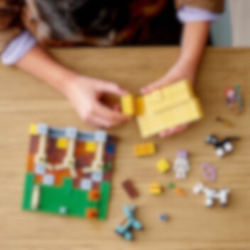 LEGO® Minecraft Häststallet (21171) kombinerar allt det roliga och äventyrliga från det populära onlinespelet med LEGO klossarnas oändliga kreativa möjligheter och glädjen i att sköta om hästar.Kreativ lek i Minecraft leksaksstallet Barn som gillar att skapa, specialdesigna och låta fantasin flöda kommer att älska detta mångsidiga LEGO Minecraft set. Stallet har öppningsbara dörrar och är fullt av autentiska Minecraft detaljer, som den gyllene moroten och en diamantrustning. Det finns hästar att mata och sköta om, en hinderbana att utforma och en skelettryttare att strida mot! Detta handgripliga, ombyggbara, bygg- och lekset är en perfekt present till barn både Minecraft spelare och hästfantaster.