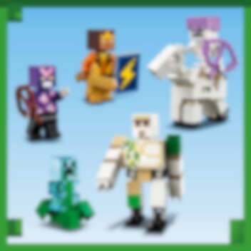 LEGO® Minecraft® Järngolemfortet (21250) har en dold överraskning: den imponerande byggnaden kan byggas om till en mäktig jätte, för grym bygg-, lek- och uppvisningsaction för Minecraft spelare från 9 år. Det ultimata LEGO Minecraft golemleksetet Detta episka lekset ger barn 2 olika lekscenarier. Det första är ett golemfort med 2 hjältar från spelet, kristallriddaren och den gyllene riddaren, som beskyddar sin bas mot fientliga anfallare, en laddad Creeper och 2 skelettryttare. För ännu mer action kan barn bygga om fortet till en enorm golemfigur med stora, rörliga armar. Med massor av välbekanta Minecraft detaljer och tillbehör är lekmöjligheterna oändliga. För ännu mer digitalt skoj kan byggare zooma in, rotera set i 3D och följa sina framsteg i den roliga, intuitiva appen LEGO Builder.