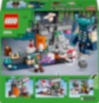 Mötet med väktaren (21274) är en LEGO® spelleksak som tar med Minecraft® spelare på ett actionfyllt gruvbrytningsäventyr i den djupa, mörka, frodiga grottan. Denna handgripliga Minecraft samlarleksak för pojkar och flickor är en fantastisk födelsedagspresent, julklapp eller spelöverraskning för barn från 7 år. Denna mångsidiga LEGO byggleksak utspelar sig i en frodig grotta med diamanter och ametister att samla på och innehåller minifiguren tyst jägare från Minecraft, en höna och en stor byggbar Minecraft väktare med rörligt huvud och rörliga armar och ben. Bland spelfunktionerna finns en handutlöst dynamitexplosion och en fallande sten. Bland tillbehören finns en hälsoåterställande gyllene morot och en brygd. För digitalt skoj kan barn använda sin enhet för att zooma in och rotera modeller i 3D med appen LEGO Builder. Innehåller 238 delar.